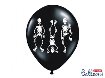 Pastelově černé balonky s obrázkem koster se mohou plnit vzduchem i héliem.