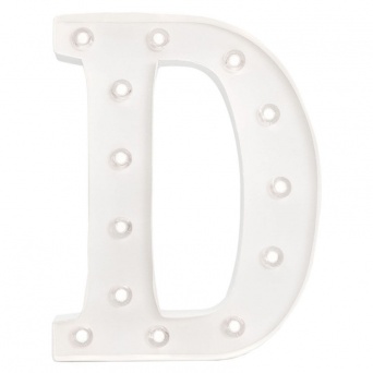 Bílé svíticí led písmeno D, které využijete například a svatbě, či jiné oslavě.